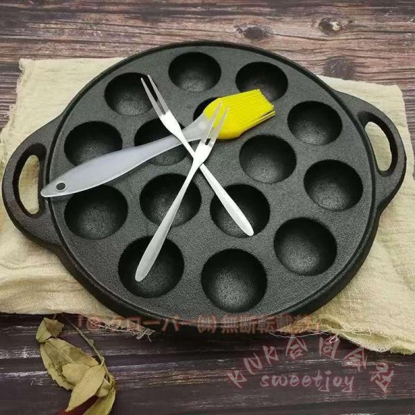 【材質】鋳鉄。外はカリッと、中はふんわりとしたたこ焼きを一度に15個作れます。耐摩耗性のある底のデザインで、均等に加熱され、手間を省きます。 【洗いやすさ】光沢のある表面設計で、簡単に洗えます。一拭きで汚れが落ち、コンパクトなため収納にも便利で、場所を取りません。 【耐久性】鉄鋳物製で、非常に丈夫で長持ちします。適切なケアをすれば、何十年も使い続けることができ、新たに買い換える必要がありません。 【多用途】家庭、屋外BBQ、レストランなど、さまざまな場面で活躍します。キッチンからゲストに料理の話題や傑作を届けるのに最適なツールです。 【取っ手の使いやすさ】ガスや電気セラミックの上で直接加熱できます。