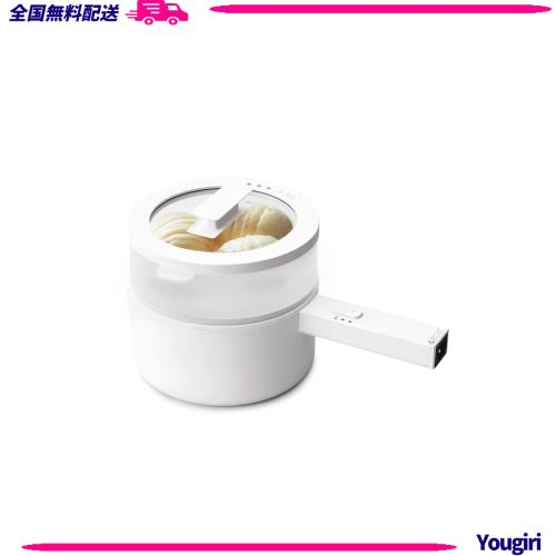 ■電気鍋 マルチポット 1台4役 煮る 焼く 蒸す 手軽 グリル鍋 炊く ケトル 調理 蒸し器 ホワイト ガラス蓋付き 調理器具 着脱式 一人暮らし