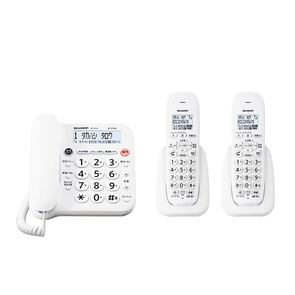 ■電話機 コードレス 本体 子機付き 子機2台 ナンバーディスプレイ シャープ SHARP JD-G33CW