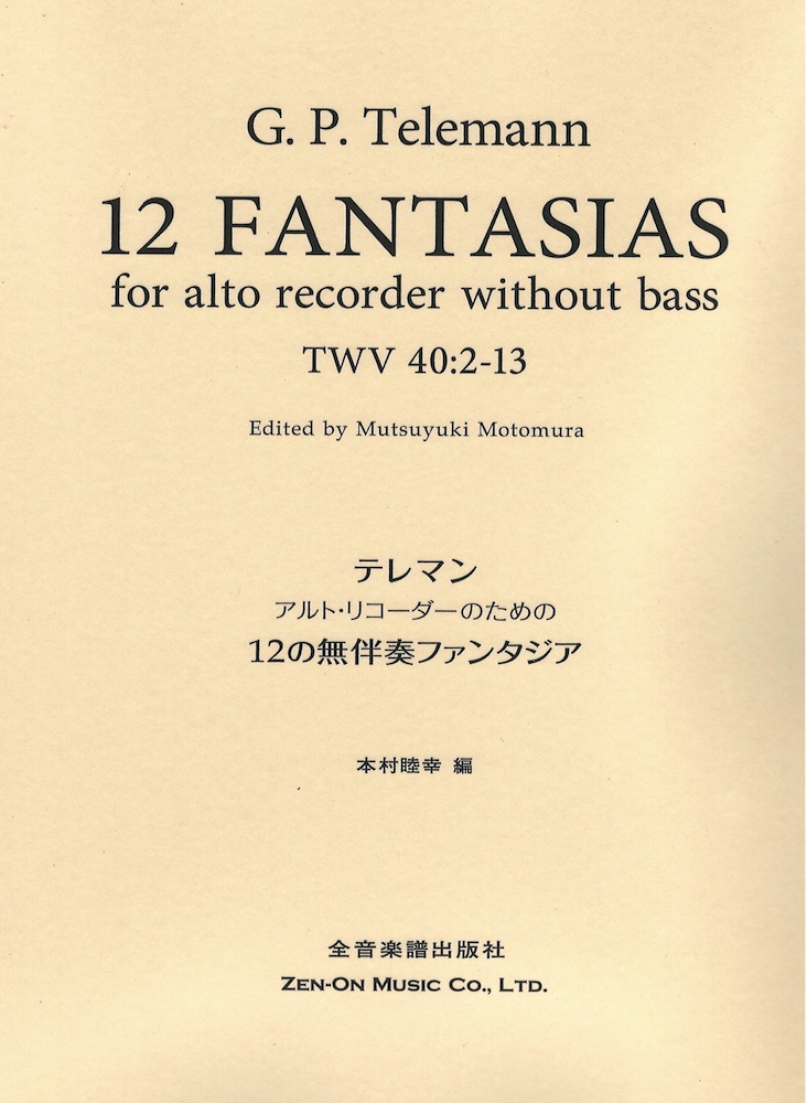 ■アルトリコーダーのための テレマン 12の無伴奏ファンタジア 全音楽譜出版社