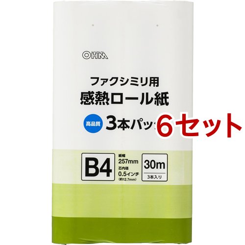 ■オーム ファクシミリ用 感熱ロール紙 B4 芯内径0.5インチ 30m 01-0732(3本入*6セット)[FAX]