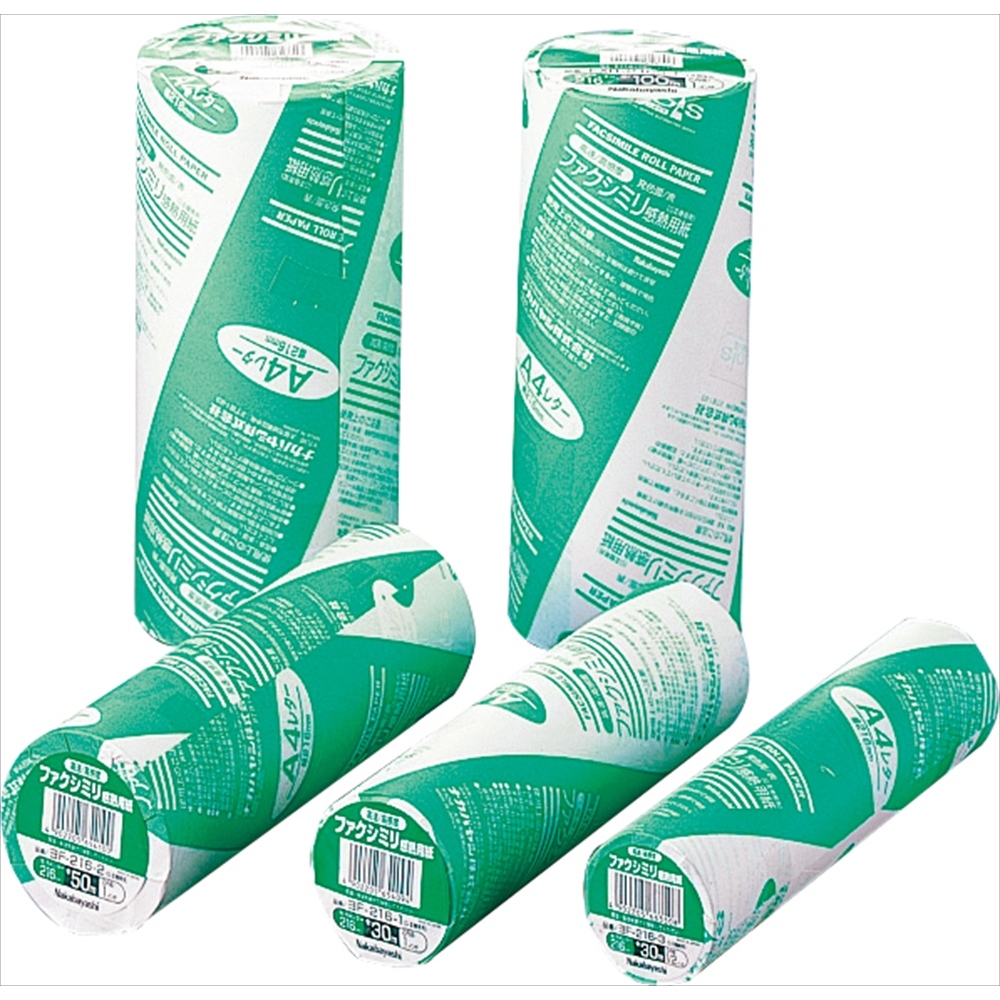 【商品説明】ファクシミリ用感熱紙A4/216mm巾のFAX用紙【詳細】仕様:A4レター・216mm巾巻:100m巻芯内径:1インチ表発色:G3機用