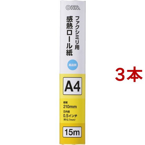■オーム ファクシミリ用 感熱ロール紙 A4 芯内径0.5インチ 15m 01-0727(3本セット)[FAX]