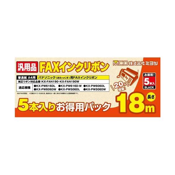■FXS18PB-5X6 直送 代引不可 6個セット ミヨシ 汎用FAXインクリボン パナソニックKX−FAN190/190W対応 18m巻 5本入り