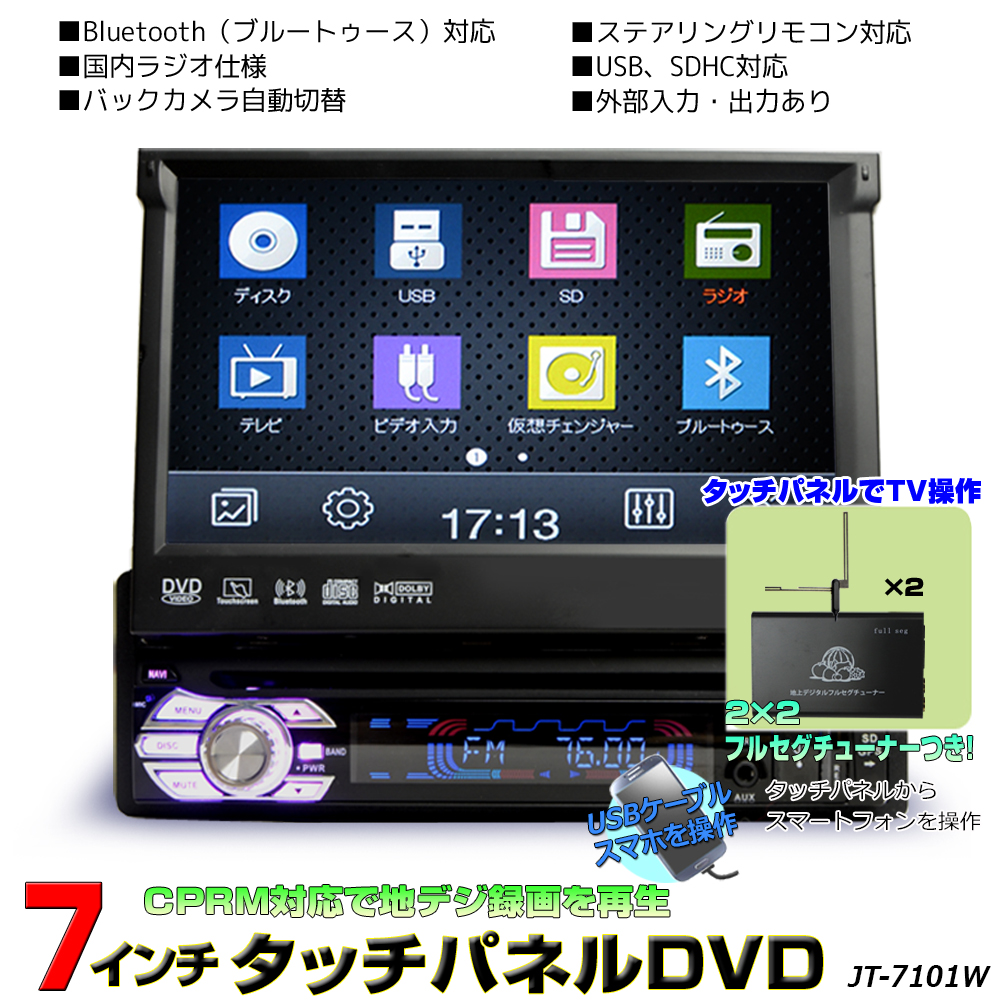 ■地デジCPRM対応 1DINインダッシュ7インチタッチパネル DVDプレーヤー +専用地デジ2x2フルセグチューナー スマホ連動 ラジオ USB SD