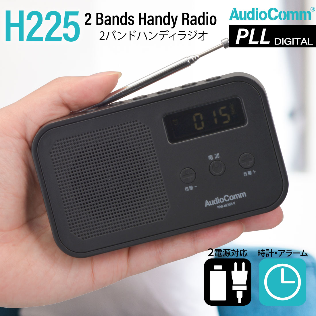■2023最新 オーム(OHM) 電機AudioComm ラジオ 木目調ポータブルラジオ AM/FM 低音強調 大型ツマミ AC電源 乾電池式 R