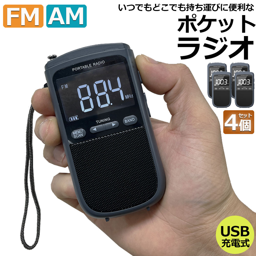 ■ポケットラジオ ラジオ FM AM USB充電式 4個セット おしゃれ ポータブルラジオ 携帯ラジオ ミニーラジオ 通勤ラジオ 防災ラジオ ロック機