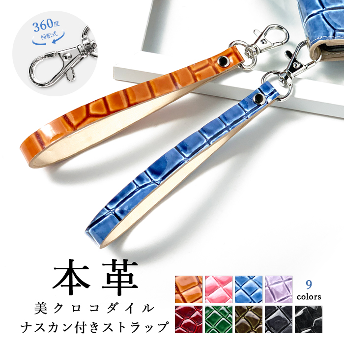 本革 美クロコダイル 型押し ストラップご要望多数だったストラップがついに登場!スマホケースに付けてストラップに手を通すと落下防止としてお使い頂けます。また、デジカメやパスケースなどの幅広いアイテムとの相性も抜群です。ご自身用はもちろん贈り物にもピッタリです!◆こちらは紐ストラップ付きverとなっております◆※ストラップのみの販売となります。※スマホケースは別売りです。※一つ一つケースの大きさに合わせて生地を切り抜いて作製しているため、個体により柄の位置が多少異なります。予めご了承ください。※プレゼント包装には対応しておりません。