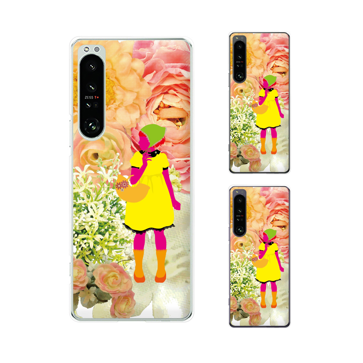 ■Xperia 1 IV (au SOG06 / docomo SO-51C / SoftBank) スマホ ケース ハード カバー 生花 少女 カラフル