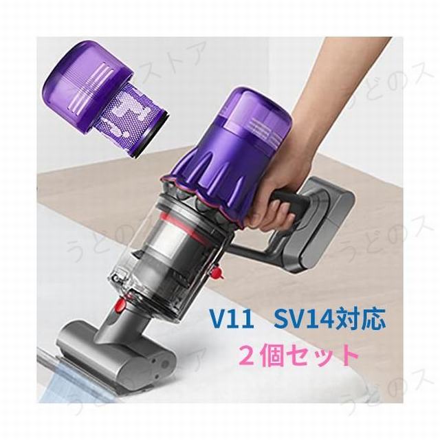 【セット数量】2個入【対応機種】ダイソン Dyson V11 Absolutepro (SV14 EXT) 、Dyson V11 Absolute (SV14 ABL)、Dyson V11 Fluffy+ (SV14 FF COM)、Dyson V11 Fluffy (SV14 FF)交換用(非純正)【高性能】二次大気汚染を防ぐために、高品質な真空HEPAフィルターは2イン1設計を採用しており、細かい粒子、ほこり、花粉などを効率的に阻止します。【取り付け】ツールが不要、迅速な取り付けできます。【メンテナンス】該当フィルタは洗濯可能、必要に応じて穏やかな洗剤を使うことができます。ただしっかりと干してから24時間後取り付けることにご注意くたさい。また複数洗浄したフィルターエレメントでは、ろ過効率が低下になるため、定期的に交換が必要。【定期交換】御家庭室内の空気を綺麗に保つこととより健康な生活を過ごすために、掃除機のフィルターを定期的に交換することが必要、6−12か月交換することをお勧めます。フィルターを交換後、掃除機の作動、使用感と吸い込み力がアップ。