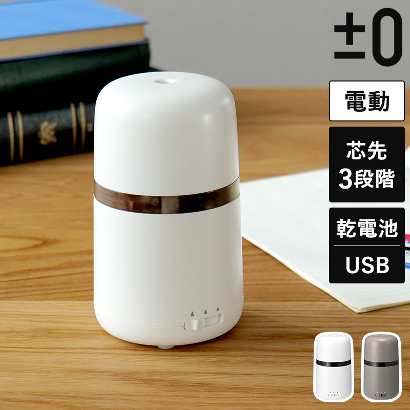 ■鉛筆削り 電動 プラスマイナスゼロ ±0 電動えんぴつ削り ZZE-K010 全自動 電池 USB給電 芯先調整 子供 シンプル 削りすぎ防止 ギフト