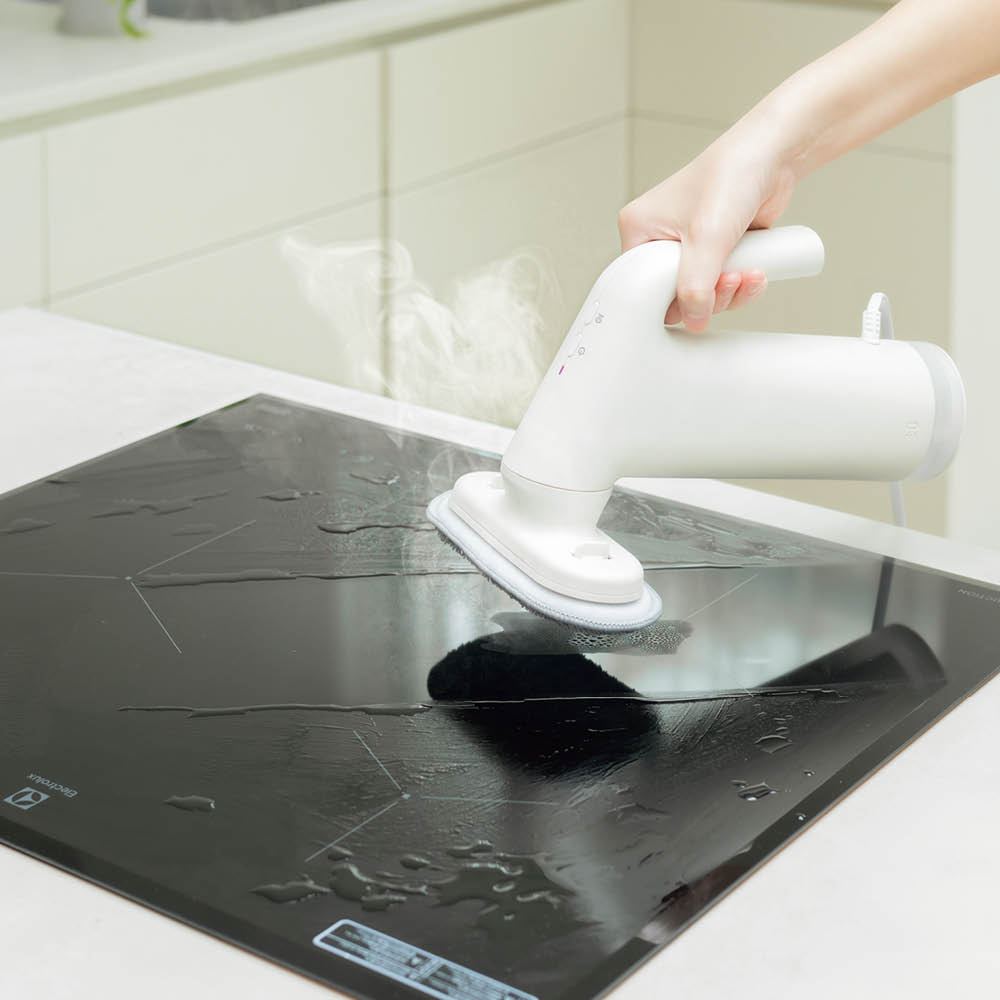 約25秒で立ち上がる高温スチームが、キッチンの油汚れから床の皮脂汚れ、衣類ケアまで大活躍。洗剤不要で赤ちゃん用品にも安心です。アタッチメントを付け替えるだけでマルチに使える設計も魅力。軽量・コンパクトでいつでもサッと手に取れる、頼れる1台です。
