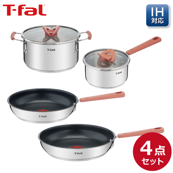 ■新生活応援【ガス火・IH対応】ティファール オプティスペースIH ステンレス 4点セット G729S4 IH フライパン 片手鍋 両手鍋 ガラス蓋