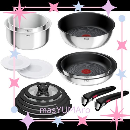 ■【オンライン限定】 ティファール 取っ手のとれる 鍋 フライパンセット 充実の14点セット IH ガス火対応 専用取っ手2本付き PFOAなどの有