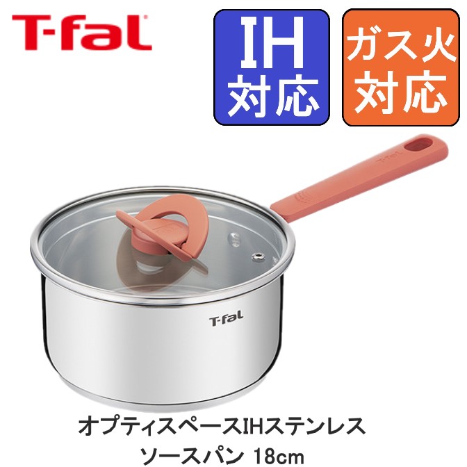 ■T-fal ティファール オプティスペースIHステンレス ソースパン 18cm G72823 送料無料 片手鍋 ソースパン 18cm IH対応 ガス火対応