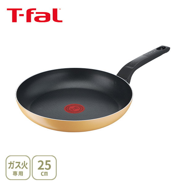 ■T-FAL ティファール マリーゴールドイエロー フライパン 25cm(ガス火専用) 取っ手付き 軽量 お知らせマーク ふっ素樹脂