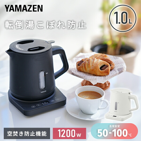■電気ケトル 1.0L 湯こぼれ防止 1200W 温度設定 50-100度 保温機能 空焚き防止 YKU-SC1210J 電気ポット 温度調節電気ケトル 湯沸かし器