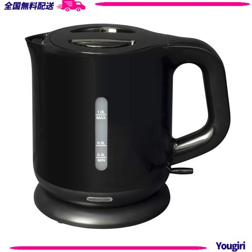 ■[山善] 電気ケトル 電気ポット 1.0L 一人暮らし 二人暮らし コンパクト 沸騰自動OFF機能付き ワンタッチ操作 ブラック DKE-100(B)