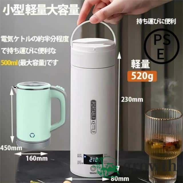 ■電気ケトル ポータブル電子ケトル 電気水筒 電気ポット 485ml 小型 ミニ 電気ボトル ボトル 魔法瓶ポット ポータブルケトル ワンプッシュ