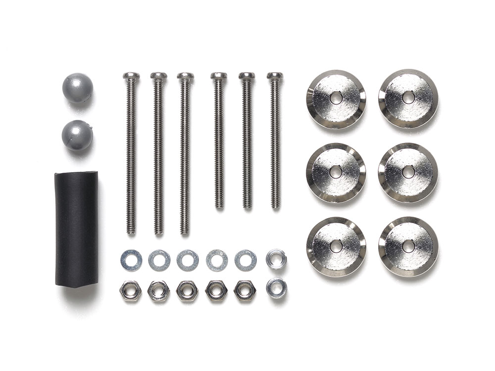タミヤ ミニ四駆特別企画(パーツ) アジャスト マスダンパー (2.5g×6個シルバー) 95608【 マシンの性能アップやセッティングに役立つパーツです 】 アップダウンのあるコースでは欠かせないマスダンパー。アジャスト マスダンパーは2.5gのウェイトを6個用意。ウェイトの数を変えることでコースに合わせたセッティングが可能です。2×25mmステンレスビス、2×30mmステンレスビス、3mmアルミスペーサー、スタビボールなどもセットしました。【 基本スペック 】 2.5gの真ちゅう製ウェイト6個に加え、取り付け用ビス、ナット、スタビライザーボールなどをセット【 使用可能シャーシ 】 MA、MS、VZ、FM-A、AR、VS、スーパーII / X / XX / TZ-Xシャーシ (一部のボディは加工が必要です)JAN:4950344956081