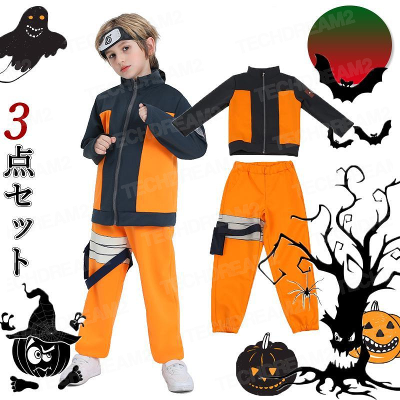 ■ハロウィン コスプレ 仮装 子供 可愛い 3点セット うずまきナルト 男の子うずまきナルト日系アニメキャラクターコスプレハロウィン仮装コ