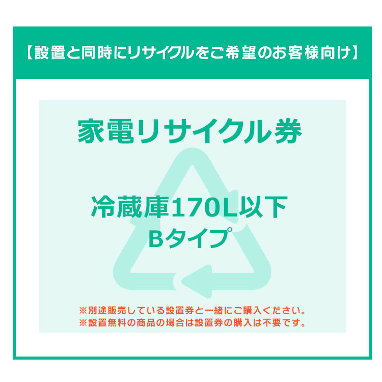 ■【設置と一緒にリサイクルをご希望のお客様向け】 家電リサイクル券 冷蔵庫 170L以下 Bタイプ 【代引き不可】