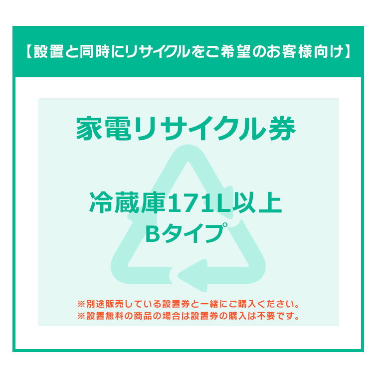 ■【設置と一緒にリサイクルをご希望のお客様向け】 家電リサイクル券 冷蔵庫 171L以上 Bタイプ【代引き不可】