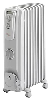 ■DeLonghi オイル・ラジエターヒーター L字型フラットフィン8枚 ライトグレ (中古品)