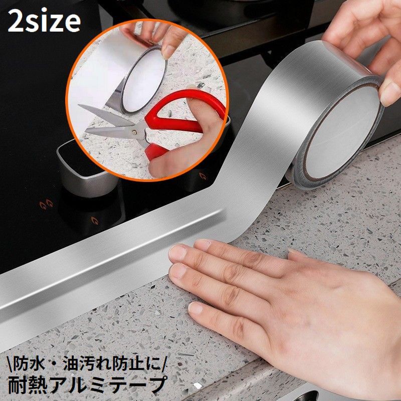 ■アルミテープ 耐熱 強力粘着 防水 防カビ 油汚れ防止 補修 隙間 キッチン 流し シンク 水回り ガスコンロ IH調理器 配管