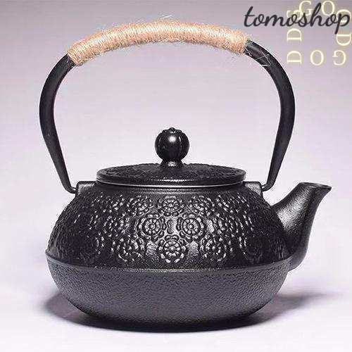 ■鉄瓶 牡丹柄 伝統工芸品 急須 茶こし付き 鉄分補給 ホーローなし ガス 電気コンロ 炭火 ih調理器 直火 対応 800ml