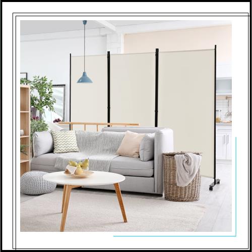 ■GYMAX パーテーション 3連 260cm 間仕切り キャスター付き 布タイプ 自立式 オフィス クリニック お家 目隠し ベージュ