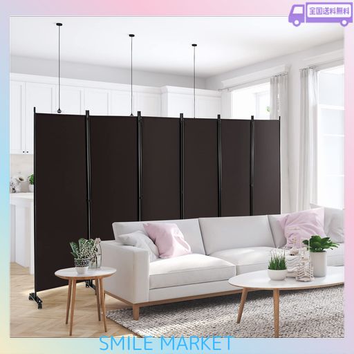 ■GYMAX パーテーション 6連 330CM 間仕切り キャスター付き 布タイプ 自立式 オフィス クリニック お家 目隠し ブラウン