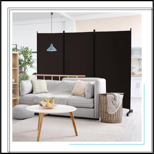 ■GYMAX パーテーション 3連 260cm 間仕切り キャスター付き 布タイプ 自立式 オフィス クリニック お家 目隠し ブラウン