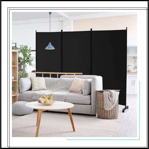 ■GYMAX パーテーション 3連 260CM 間仕切り キャスター付き 布タイプ 自立式 オフィス クリニック お家 目隠し ブラック 法人様向け
