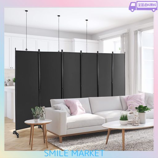 ■GYMAX パーテーション 6連 330CM 間仕切り キャスター付き 布タイプ 自立式 オフィス クリニック お家 目隠し グレー