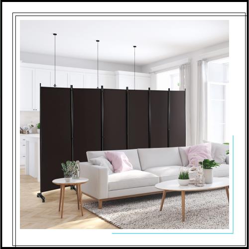 ■GYMAX パーテーション 6連 330cm 間仕切り キャスター付き 布タイプ 自立式 オフィス クリニック お家 目隠し ブラウン