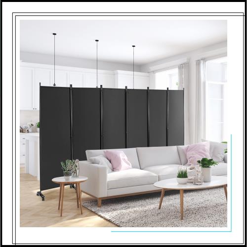 ■GYMAX パーテーション 6連 330cm 間仕切り キャスター付き 布タイプ 自立式 オフィス クリニック お家 目隠し グレー