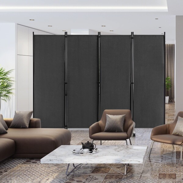 ■GYMAX パーテーション 4連 220cm 間仕切り キャスター付き 布タイプ 自立式 オフィス クリニック お家 目隠し グレー