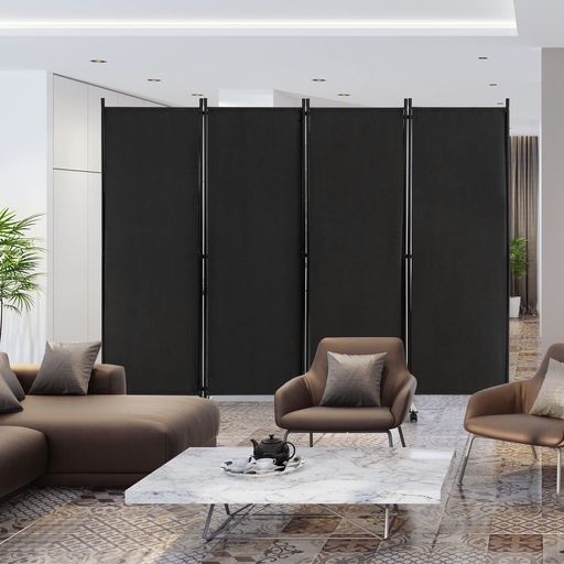 ■GYMAX パーテーション 4連 220CM 間仕切り キャスター付き 布タイプ 自立式 オフィス クリニック お家 目隠し ブラック