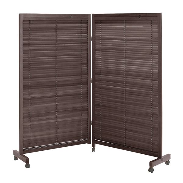 ■和風 衝立/パーテーション 2連 〔ブラウン〕 幅850×奥行370×高さ1550mm×1枚 木製 キャスター付き 組立品 〔リビング 和室〕 【北海道
