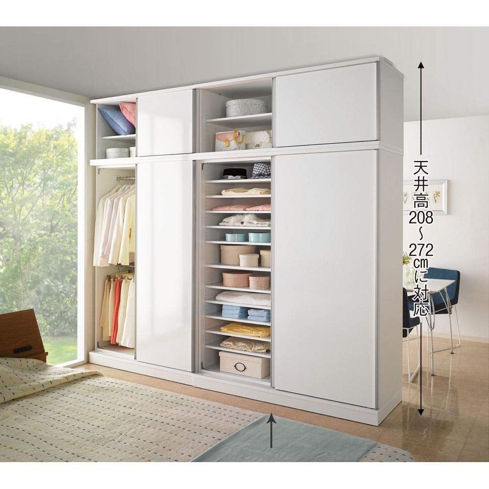 ■引き戸間仕切りワードローブ ハンガー+棚・幅148cm リビング収納 パーテーション 間仕切り 632350