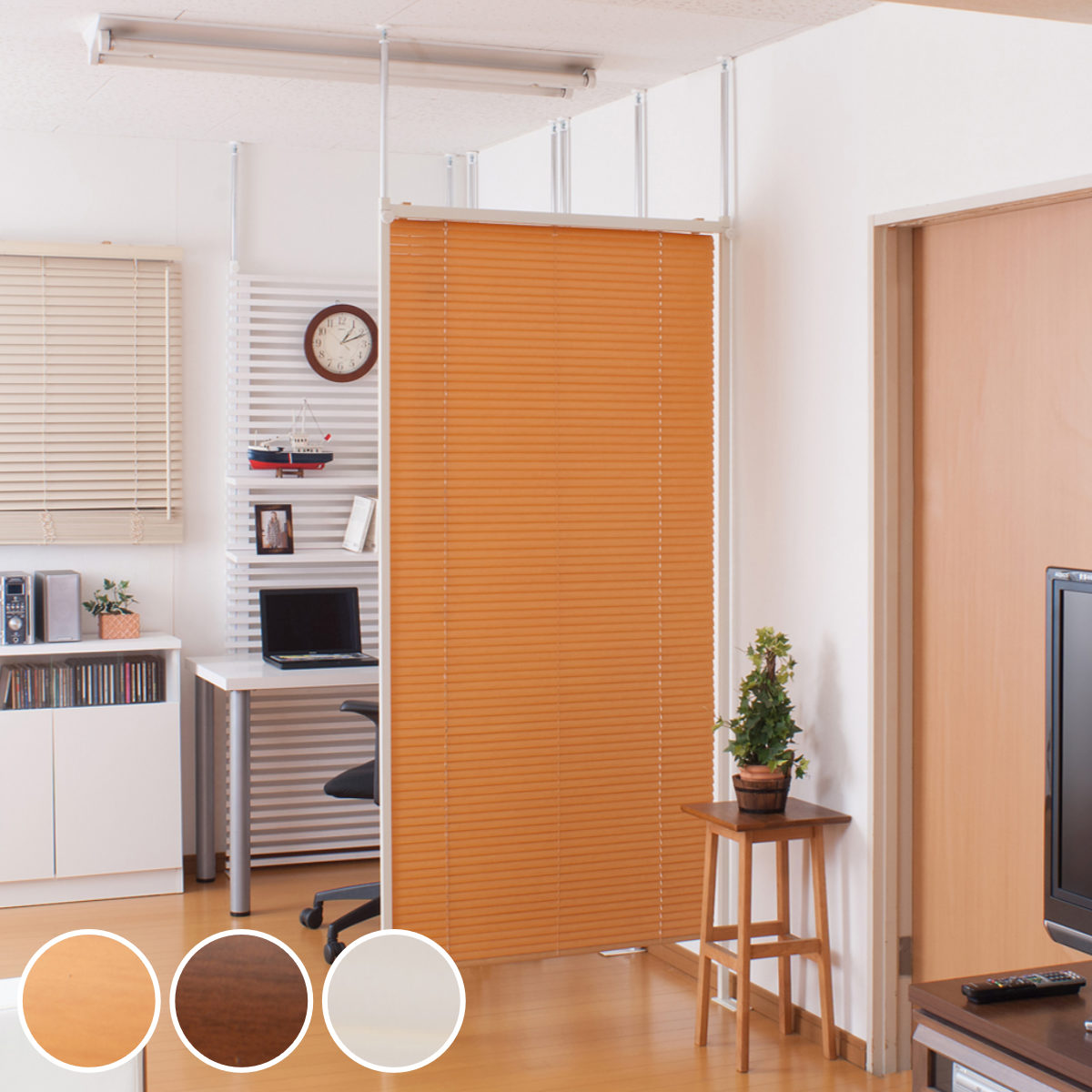 ■突っ張り ブラインドパーテーション シングルタイプ 幅96cm 高さ198cm 日本製 ( つっぱり パーテーション ブラインド 間仕切り 衝立 パ