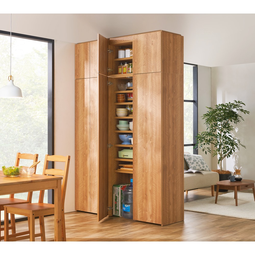 空間を分けて住みやすく、パントリーも増設できる収納が新登場!間仕切り仕様で、ペットボトルやビール缶のカートン、大量の食器、食品ストックや買い置きをぎっしりしまえるキッチン収納です。