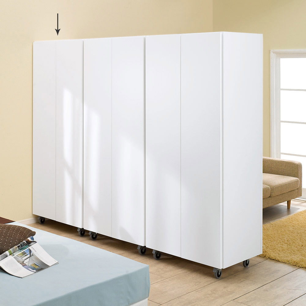 板扉で自然にお部屋を間仕切れる壁面収納ワードローブ。広いリビングやダイニングの空間を仕切って使いたい方におすすめです。キャスター付きでお部屋のレイアウトも簡単に変えられます。