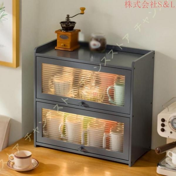 ミニ食器棚 食器棚 上置き ミニカップボックス 2段 収納ボックス 収納ケース 箱収納 収納 ボックス キッチンラック 卓上食器棚 調味料棚 卓上収納