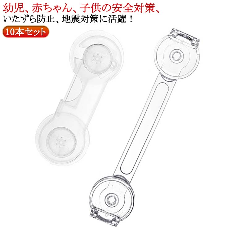 ■食器棚 安全ロック ガード 扉 透明 クリア ロック 冷蔵庫 地震対策 ドア 引き戸 10本セット 引き出し 便座 棚 ストッパー 開き戸 戸棚 チ