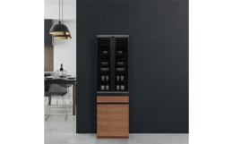 ■【ふるさと納税】食器棚 クロノス 60DB 【ウォールナット・白柾目】 幅60cm ダイニングボード 完成品 キッチン収納 スリム キッチンボー