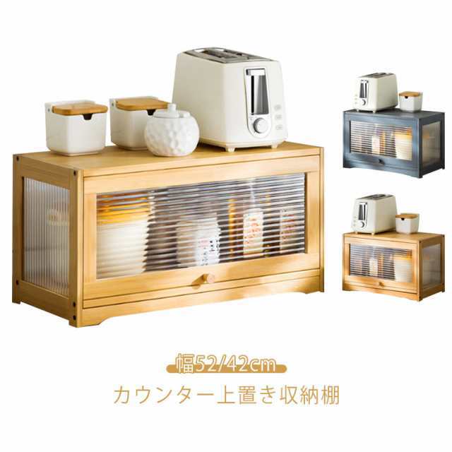 食器棚 上置き食器棚 幅52/42cm 上置き キッチン収納 シェルフ 扉付き 整理用品 ロータイプ コンパクト ガラス 上置き 収納 木製 スリム キッチンラック キッチンキャビネット 卓上 食器 整理 職場 給湯室 小さい ミニ