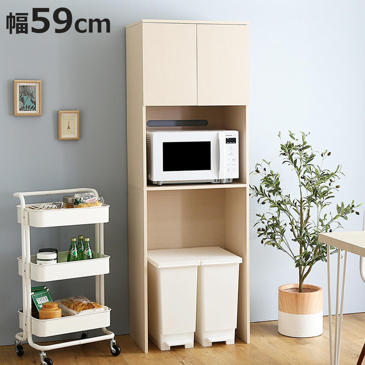 ■ごみ箱上ラック 幅59cm 木製 スリムタイプ 北欧調 ( ごみ箱上 ラック 棚 ゴミ箱上収納 収納 ダストボックス スリム 食器棚 キッチン収納