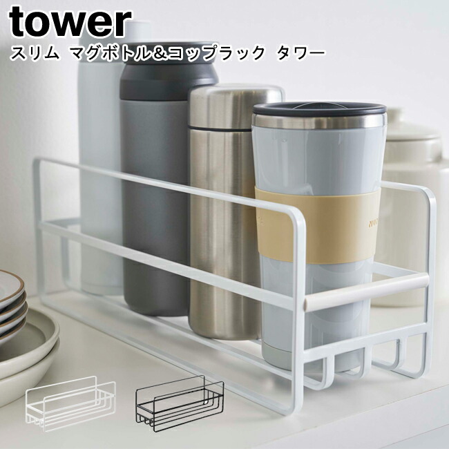 ■MM1 スリム マグボトル&コップラック タワー 山崎実業 tower ホワイト ブラック 5643 5644 食器収納 食器棚 コップラック キッチン収
